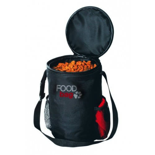 Hosszabb utakra tervezték ezt a praktikus ételhordót. Belsejében nagyjából 1,5 kg eledel fér el, melyet szárazon és frissen tart. A két oldalsó hálós zseb egyikében összecsukható etető/itató tál található, 1,8 l űrtartalommal.