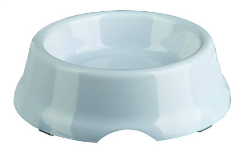 Egyszerű műanyag etetőtál kutyáknak, csúszásgátló gumitalpakkal. Mosogatógépben is mosható.