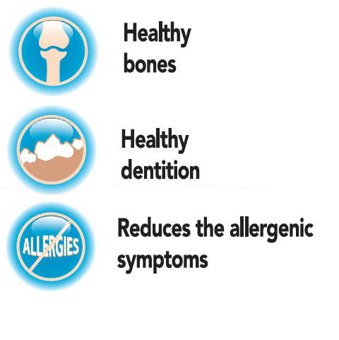 mivel a csontok és fogak építőanyaga (a foszforral együtt). Kölyök és fiatal kutyák számára elengedhetetlen a maximális csontsűrűség kialakításában, a csontok és fogak egészséges fejlődése szempontjából igen fontos szerepet játszik. A kalcium nélkülözhetetlen a B12 vitamin felszívódásában, ezen kívül elősegíti a vas felszívódását. •
