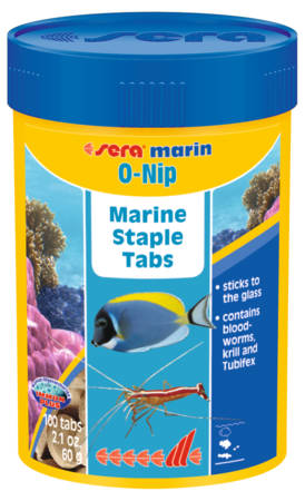 A sera marin O-Nip gondosan előállított tablettákból készült amelyet enyhe ujjnyomással az akváriumüvegre rögzíthetnek. Ez lehetővé teszi, hogy megfigyelje még a félénk halakat is.